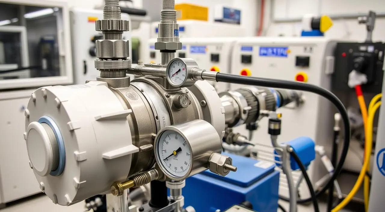 For small leaks, a helium leak detector works great. Helium is a gas that’s hard to find in the air, doesn’t react with anything, and is easy to get. These detectors can find leaks as tiny as 1×10-6 mbar*l/s. This keeps your vacuum system working perfectly.
