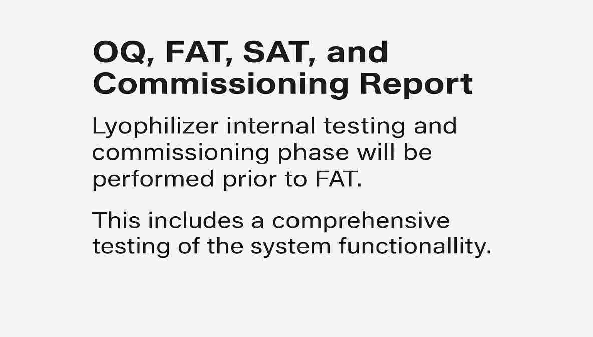 Lyophilizer internal testing and commissioning phase will be performed prior to FAT. This includes a comprehensive testing of the system functionality. In general, the tests will only be documented for internal use. To reduce test time and project lead time, it is suggested to combine the commissioning tests and the IQ tests as far as possible to avoid redundant testing. Tests that are related to the design and will not be affected by the disassembly of the equipment (e.g., password test, operator error, condenser capacity) may be performed at only one. Relevant tests have to be commonly agreed during FAT