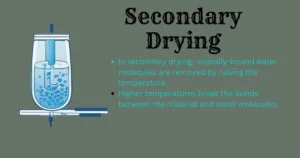 The secondary drying phase removes any residual water molecules bound to the product. This phase involves gradually increasing the temperature to drive off the bound moisture.
