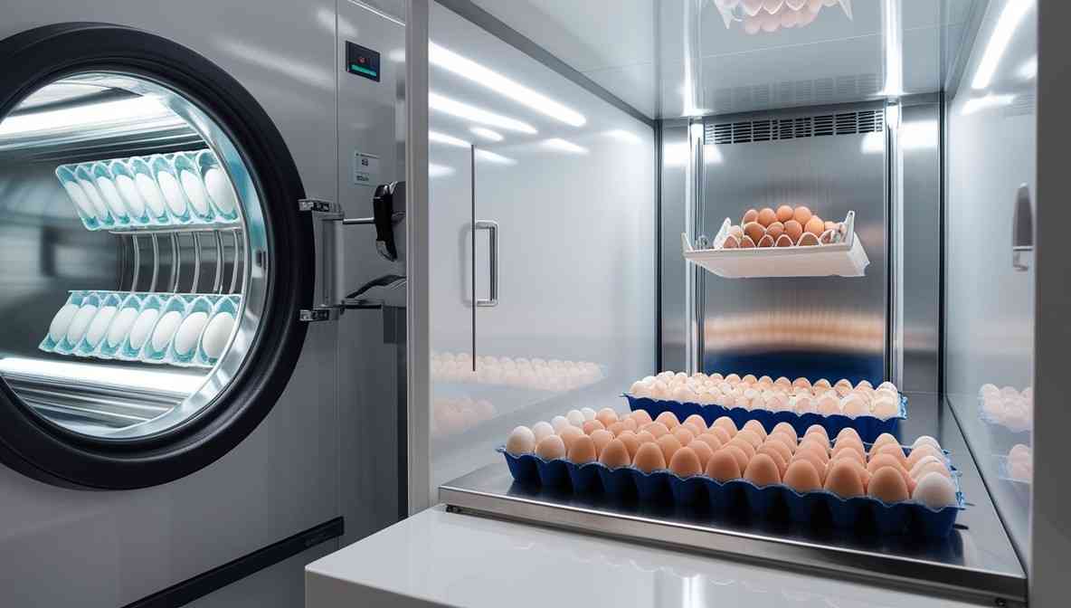 Once the vacuum chamber is cooled, insert the trays of frozen eggs. Freezing the trays ahead of time can shave off up to 8-10 hours of drying time, making the process more efficient.