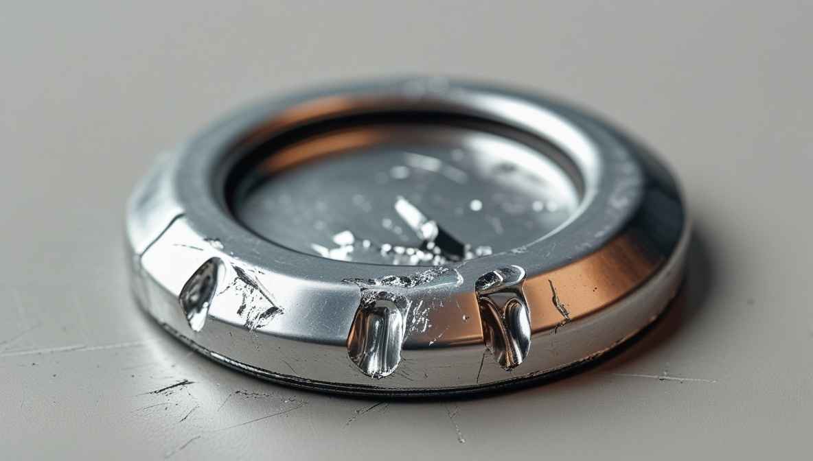 Misaligned aluminum crimp seals: Which fail to apply uniform pressure across the stopper surface.