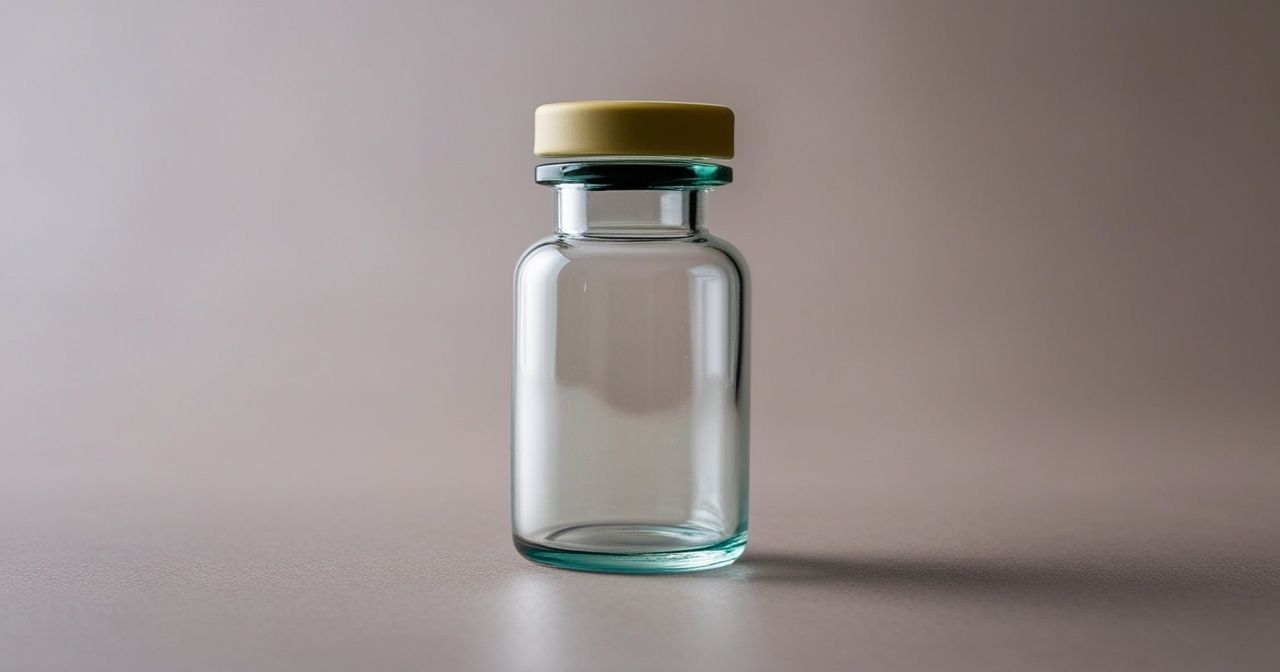 A small glass bottle with a flat bottom, short neck, and flat flange designed for secure stoppering, commonly used in pharmaceutical applications.