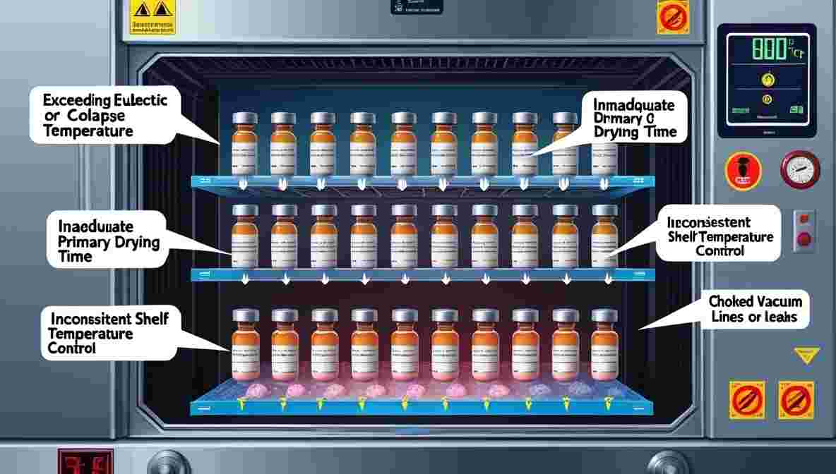 - Exceeding Eutectic or Collapse Temperature: Operating above the product’s critical temperature leads to structural breakdown.