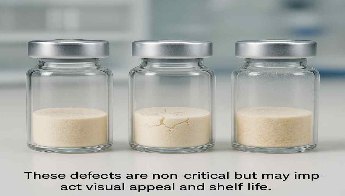 Lyophilization defects refer to abnormalities or failures in the freeze-dried product, container, or closure system. These defects can result from improper process parameters, equipment failure, environmental contamination, or formulation instability. Based on their severity and impact on product quality and safety, they are divided into minor and major defects.